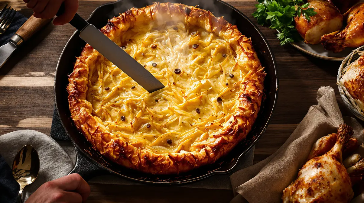 Vous aimez le gratin dauphinois, mais vous avez envie d’autre chose pour accompagner vos volailles rôties ? Il existe une vieille recette paysanne, simple et généreuse, qui transforme de simples pommes de terre en un grand tapis croustillant et doré. Une galette rustique, légère mais très gourmande, qui met en valeur une dinde, un chapon ou une pintade comme peu d’accompagnements savent le faire.